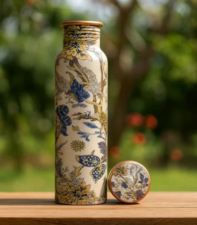 Aura Copper Designer Pure Copper Water Bottle (950ml) | Leakproof Ayurvedic Vessel with Modern Watercolor Floral Print | Stylish & Healthy Gift for Women