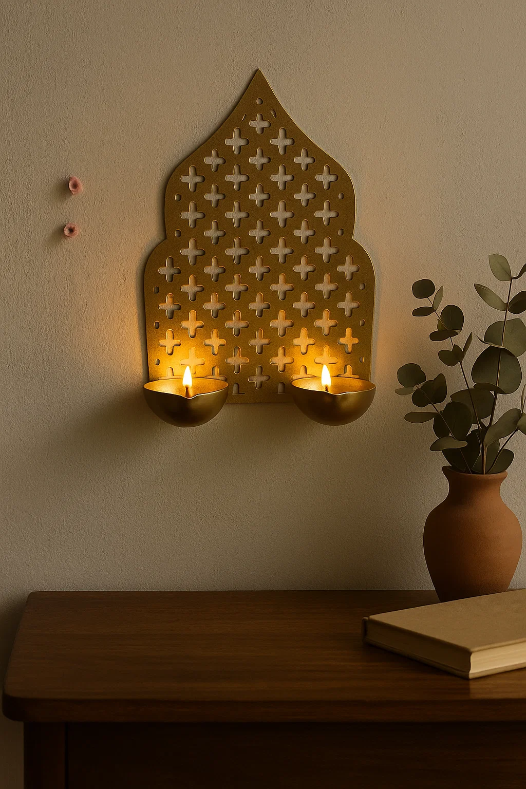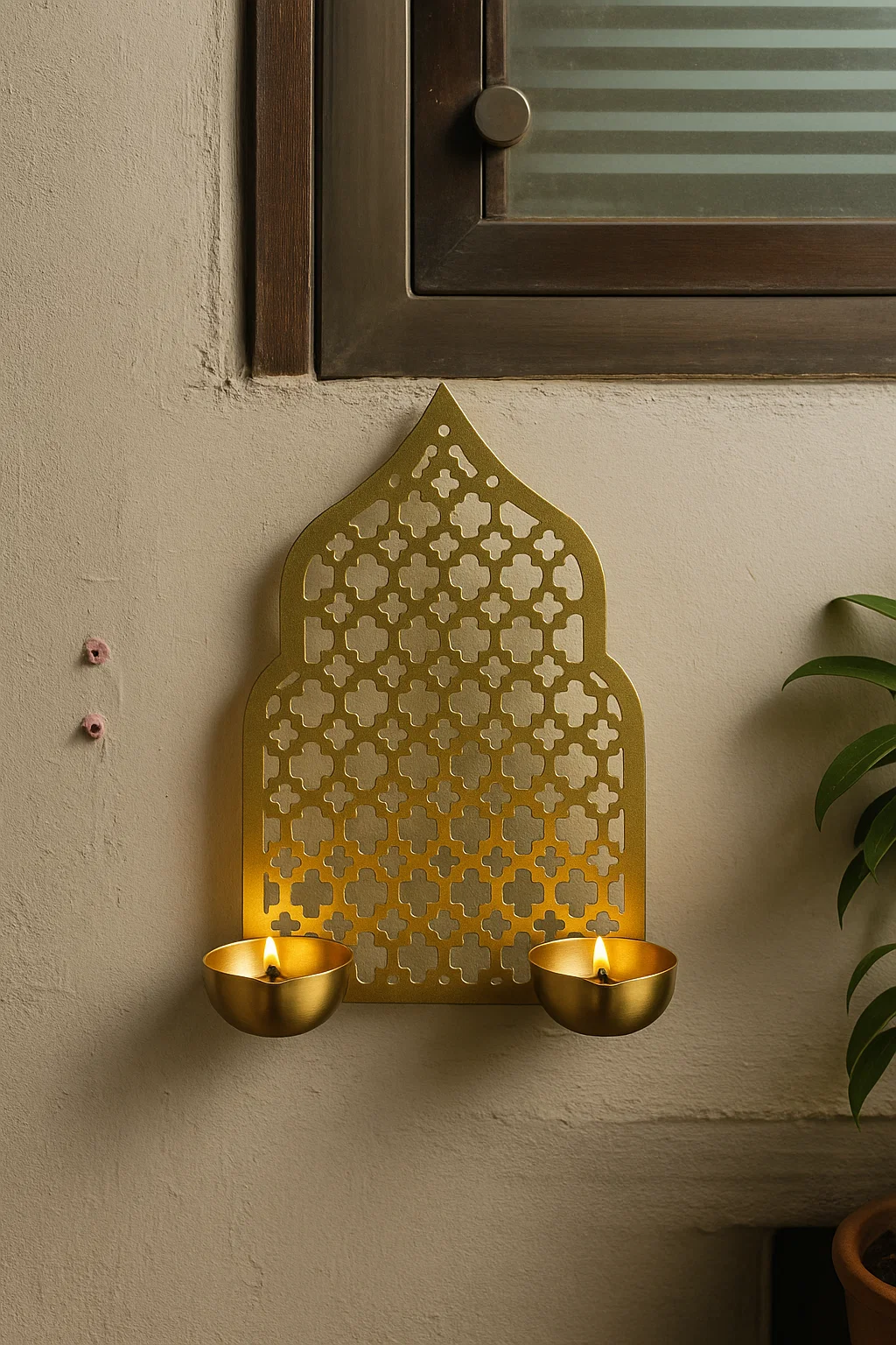 Handcrafted Mughal Jaali 2 Diya Wall Mount